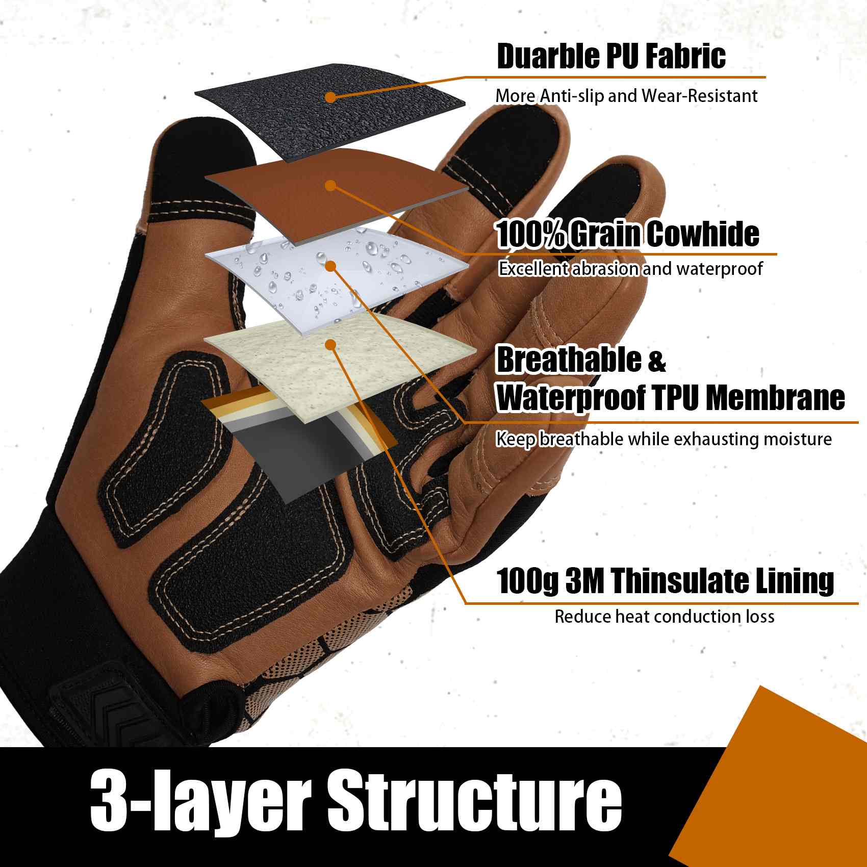 - ong-Lasting Warmth & Waterproof: These winter gloves are meticulously crafted with a 100-gram thinsulate lining and TPU waterproof material, ensuring your hands stay dry, warm and comfortable during winter work tasks.
